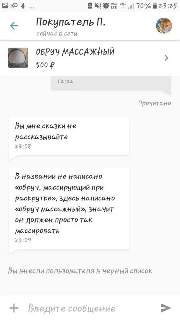 В нашем мире довольно много странных людей, общение с которыми порой может доходить просто до абсурда. Сегодня мы хотели бы показать вам короткую переписку продавца массажного обруча с покупателем, который был заинтересован в покупке.