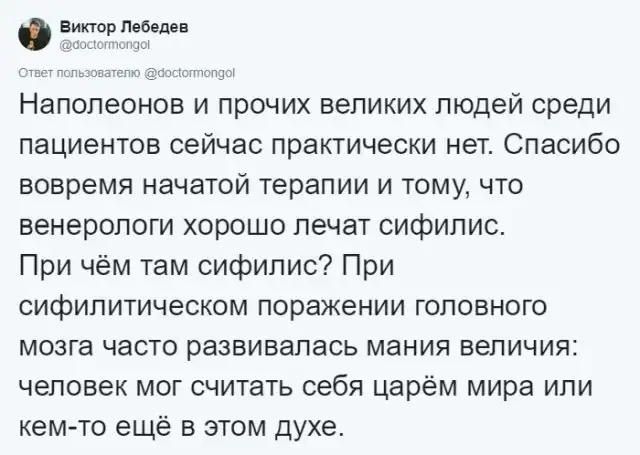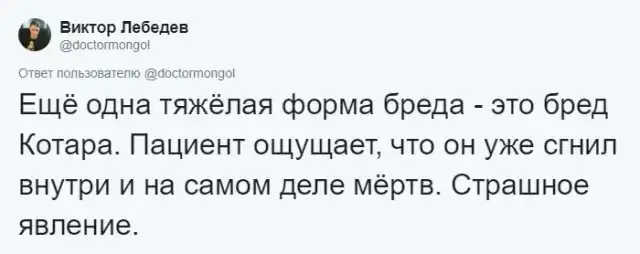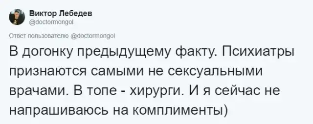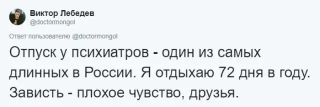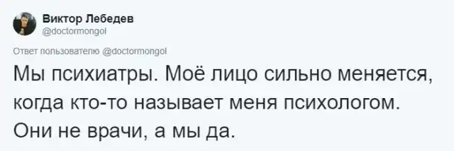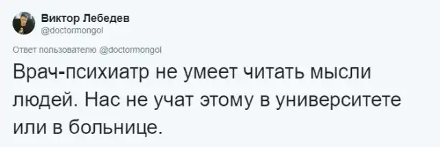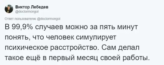 Психиатр по имени Виктор Лебедев уже на протяжении 5 лет работает с различными пациентами, поэтому у него накопилось немало интересных историй и фактов из его практики. Периодически он высказывает свои мысли в социальной сети, почитать самые интересные из которых мы предлагаем вам в продолжении поста.