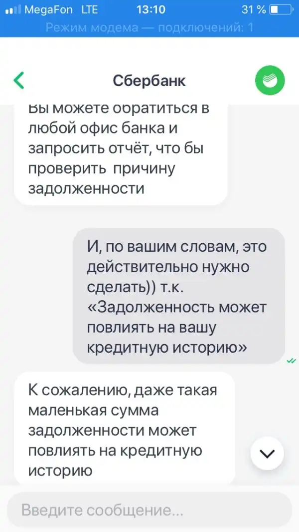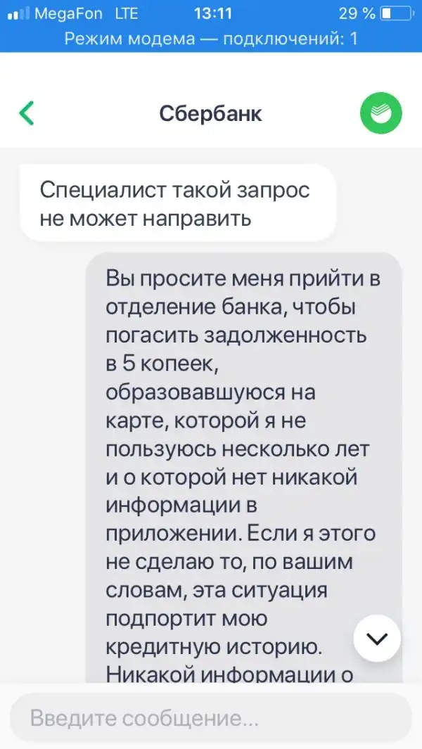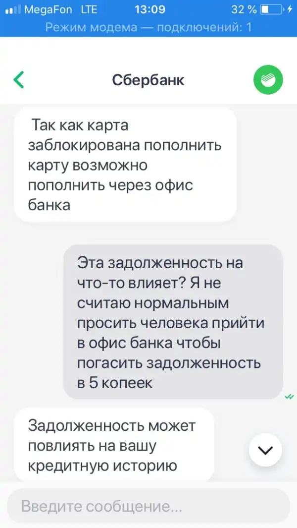 Когда вы пользуетесь услугами банка на протяжении нескольких лет и имеете хорошую кредитную историю, это вовсе не означает, что задолженность всего в 5 копеек не сможет испортить вам настроение и все планы. Как оказалось, банки даже готовы разбираться через суд, если вы не оплатите такую задолженность, а сделать это можно, только простояв очередь в отделении банка. Читаем переписку с оператором банка далее.