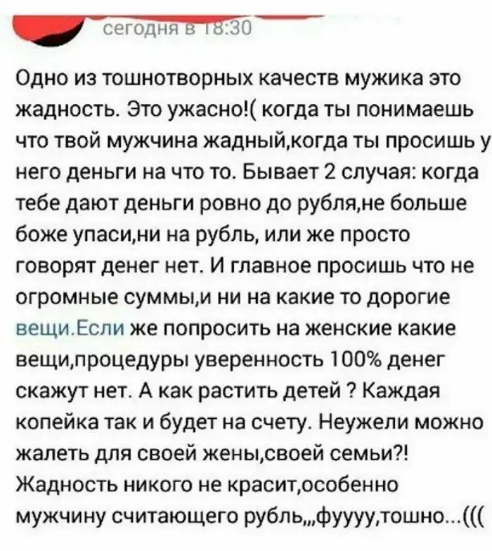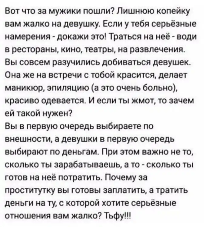 6. "Мужчины выбирают по внешности, девушки - по деньгам"