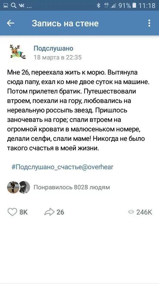 У каждого свое понимание счастья. Но, читая короткие истории пользователей в сети, понимаешь, что это ощущение может прийти совершенно из ниоткуда, и сделать себя и другого счастливым достаточно просто. Только чуть постараться.