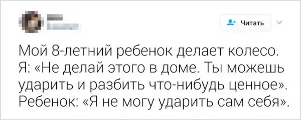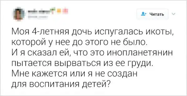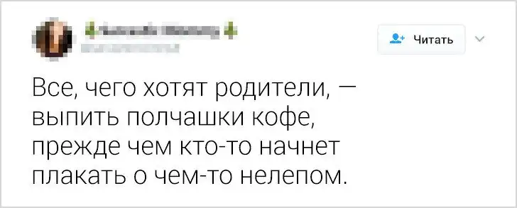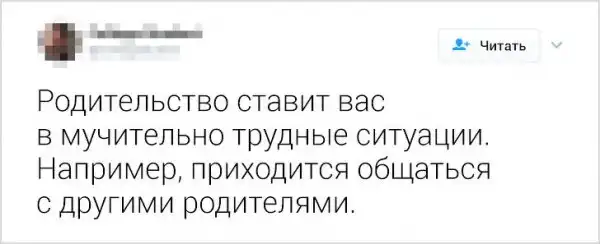 Когда родительские обязанности становятся непосильной задачей — это верный знак, что пришло время остановиться и перевести дух. Ведь быть мамой и папой — самая естественная и одновременно сложная вещь в мире, а поэтому воспитывать детей проще с юмором. Об этом не понаслышке знают пользователи твиттера.