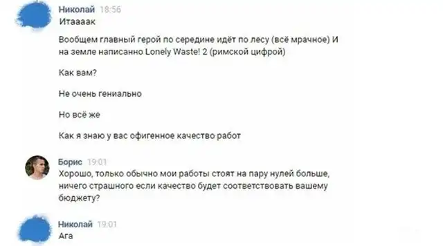 В этом посте все понятно и без описания. Заказчик по имени Николай хотел получить рисунок на обложку альбома, но его бюджет оказался не слишком велик. Как говорится, сколько заплатишь, такой товар и получишь.