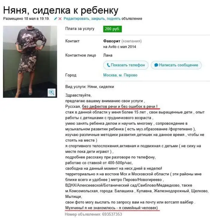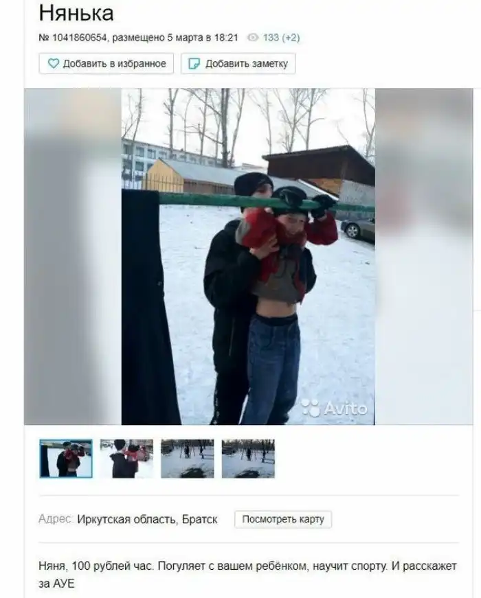 Перед вами ТОП объявлений, авторы которых оказывают различные услуги в сфере воспитания и присмотра за детьми. Иногда встречаются очень странные мессенджы, которыми и хочется с вами поделиться.