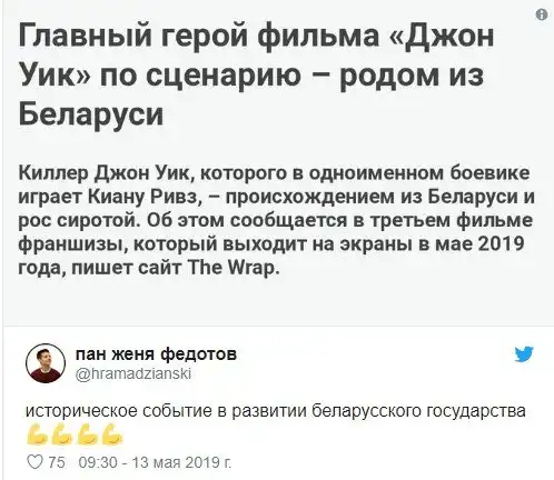Из рецензии американского журналиста на третью часть Джона Уика выяснилось, что Джон является сиротой из Беларуси. Теперь понятно, почему он такой крутой ))