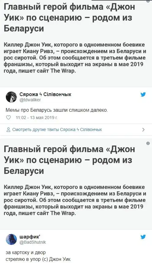 Джон Уик оказался сиротой из Беларуси. Это стало темой для шуток