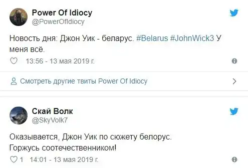 Про белоруса-Уика уже начали шутить пользователи твиттера.