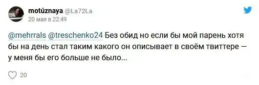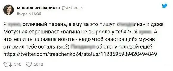 По поводу этого твита высказалась даже обвинённая по двум статьям за мемы Мария Мотузная, которая и вовсе не оценила такой поступок. По ее словам, она много лет читает посты этого парня, которые из-за огромного количества лайков высвечиваются в ленте.