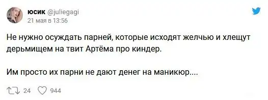 Это вызвало новую волну споров вокруг денег на маникюр в "Киндер-сюрпризе". Только на этот раз уже обсуждали критиков такого подарка.