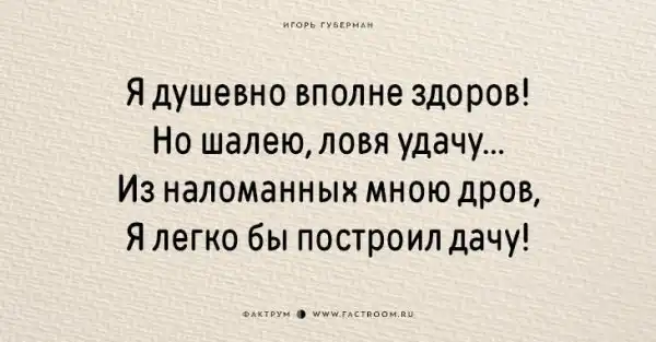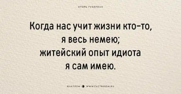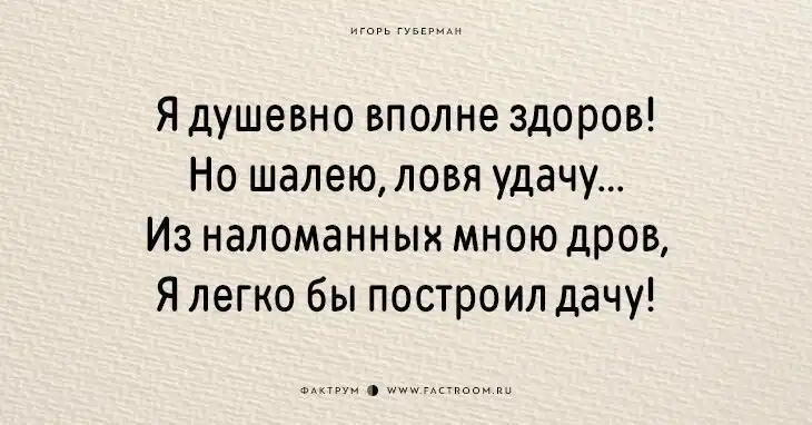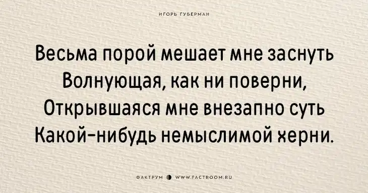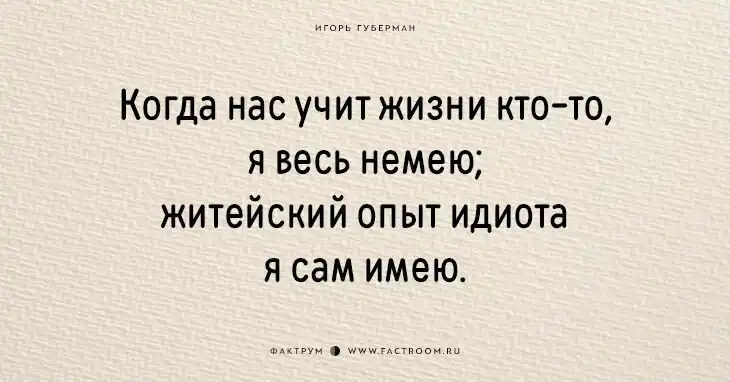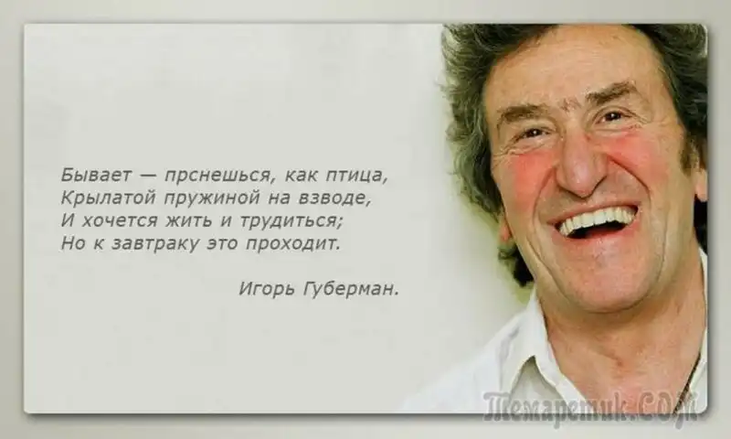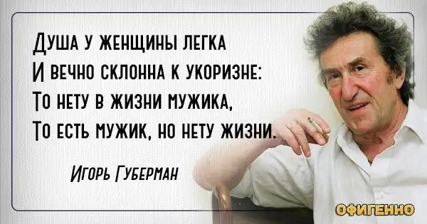 Игорь Миронович Губерман- поэт, прозаик. Даже не совсем поэт, а скорее таки бард. Знаменит своими четверо (а также дву-, шести- и далее как повезет) стишиями — «гариками».