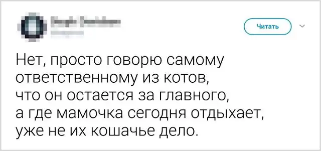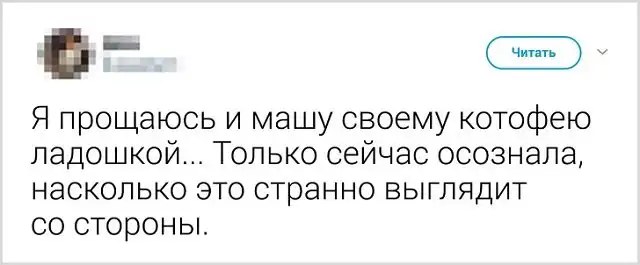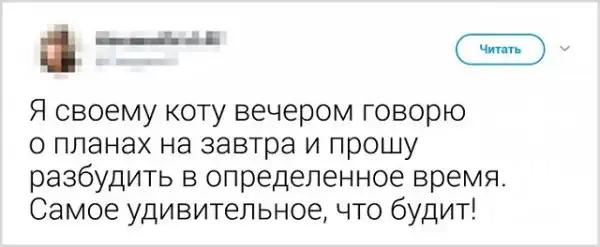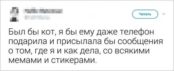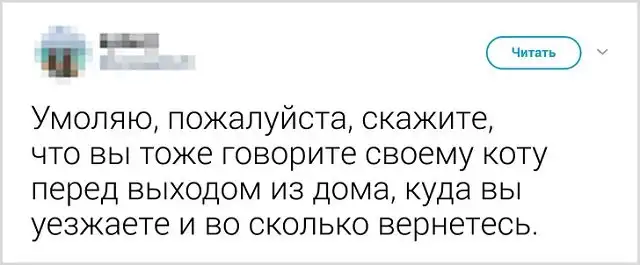 Однажды девушка по имени Тася Никитенко решила написать пост в соцети, в котором она попросила пользователей признаться, делятся ли они со своими питомцами планами на день. В итоге получился полноценный тред, где множество людей поведали, как они прощаются со своими котиками, когда собираются выйти из дома.