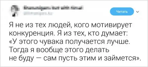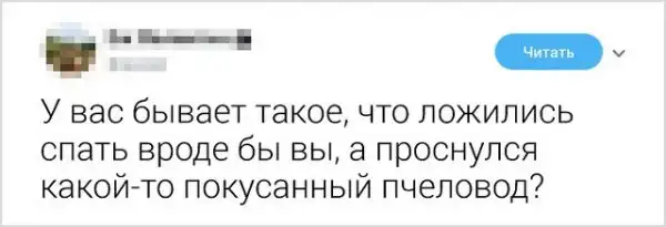 Ну что тут можно сказать? В вас ждет новая партия остроумных твитов от пользователей, которые знают толк в сарказме и остроумии. Пользователи поделились забавными мини-историями про владельцев машин и людей в туалетных кабинках, пьяных комаров и внутренних жаб, и многом другом.
