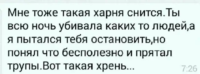 Забавные диалоги людей, которые состоят в отношениях. Наверное, когда люди переходят рубеж дружбы и начинается что-то большее, в переписках появляется много интересных деталей. Например, флирт сменяется бытовыми ситуациями, и никто больше не пытается показать себя с лучшей стороны.