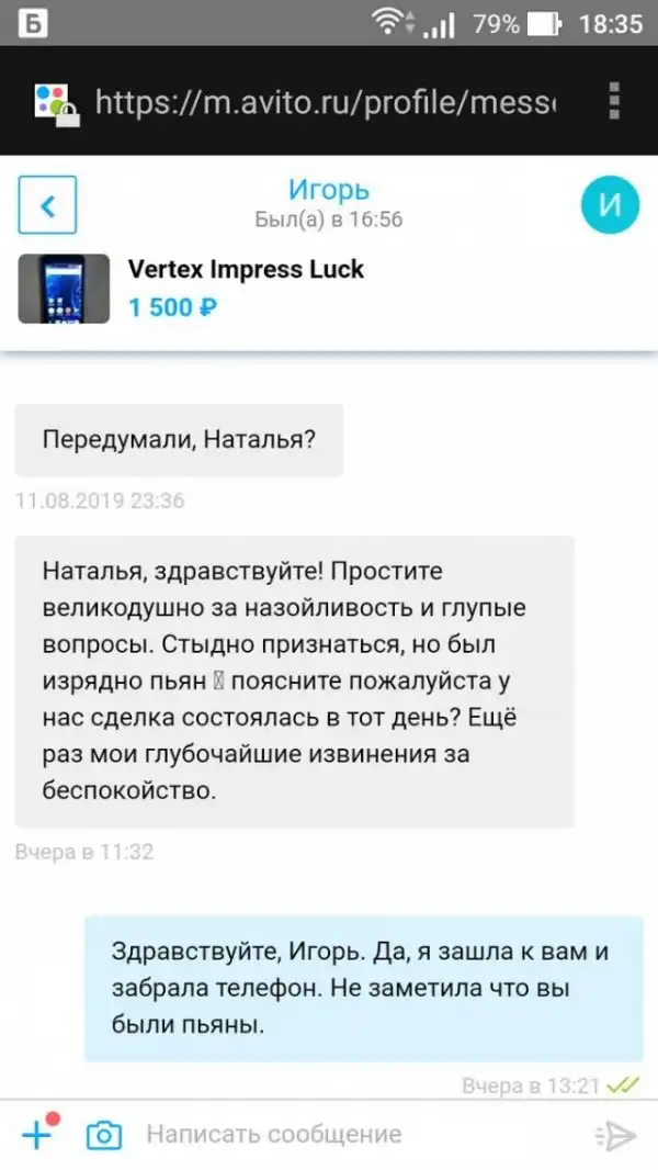 История одной переписки покупателя с продавцом. Довольно забавная ситуация, в которой продавец успешно продал свой телефон, но, к сожалению, полностью забыл об этом.