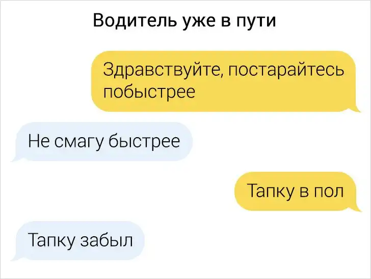 Переписи с водителями такси стали классикой юмора в Сети. В чатах мобильных приложений таксисты регулярно выдают множество смешных "перлов", благодаря которым появляются такие подборки. Предлагаем поднять себе настроение и посмотреть свежую порцию забавных переписок с водителями такси.