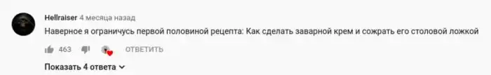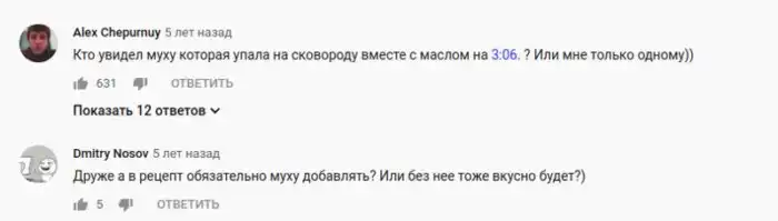Я обожаю смотреть кулинарные шоу... Но ещё больше люблю читать комментарии к видосикам. Собрал одни из самых стёбных.