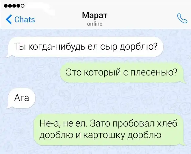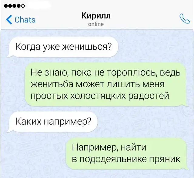 Если в человеке накопился сарказм, то его нужно срочно выплеснуть в свет. Чтобы не бегать по улице и не пугать прохожих потоком шуток, лучше всего зайти в мессенджер на своем смартфоне. Там можно вдоволь острить, шутить, и просто дурачиться. Предлагаем глянуть подборку забавных переписок от людей, которым срочно нужно "вышутиться".