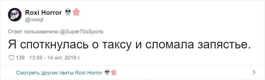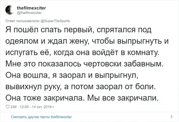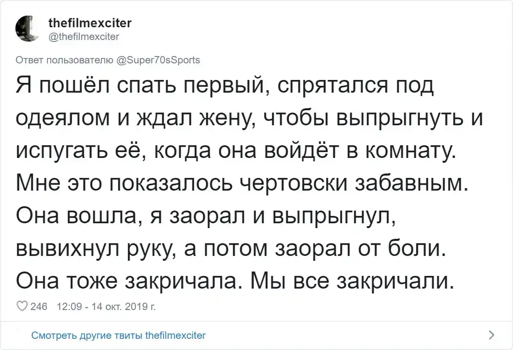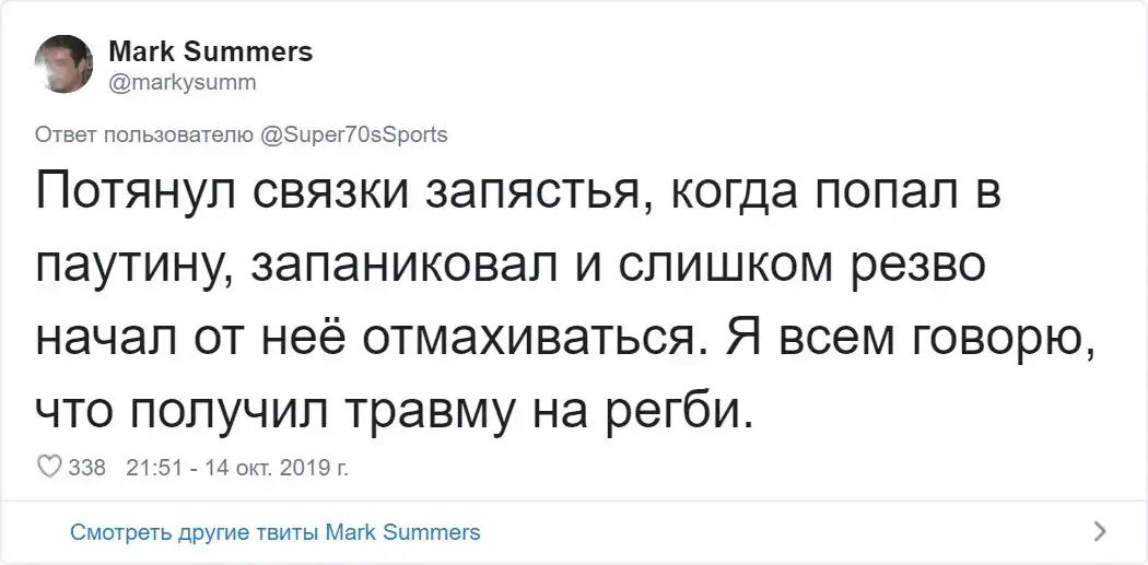Пожалуй, у всех нас когда-то были неприятности, которые заканчивались вывихами, синяками, ушибами и переломами. Вспоминать о таких случаях, как правило, не очень приятно. Но порой, даже у такого неприятного события, как прелом, может быть забавная и дурацкая предыстория. Пользователь Твиттера с ником "Super70sSports" предложил подписчикам рассказать о самых глупых травмах, которые они когда либо получали.