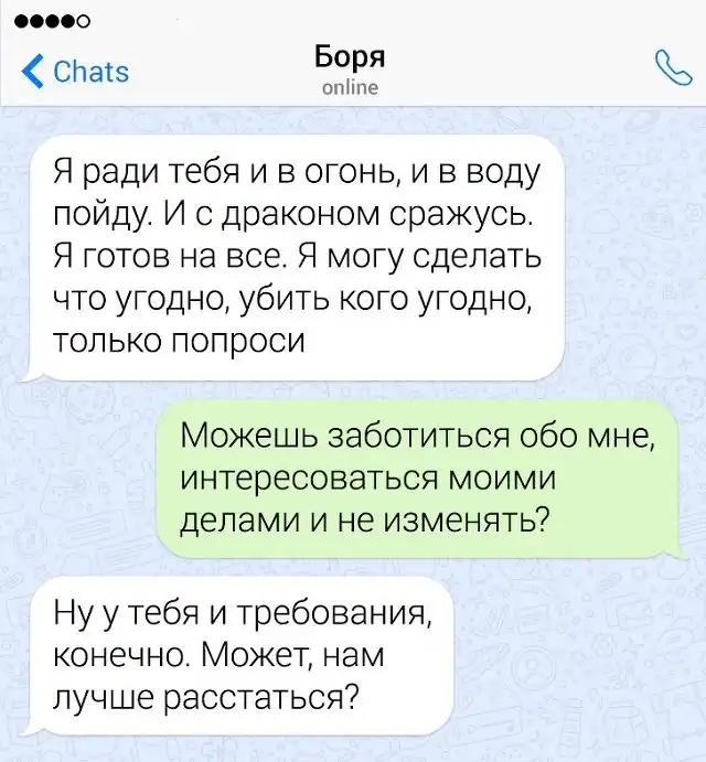 Раньше, чтобы познакомиться с девушкой нужно было подойти к ней и заговорить, но сегодня даже эти простые шаги уже не нужны. Благодаря мессенджерам и социальным сетям можно завести отношения, не вставая с дивана. Сегодня любой вопрос можно решить с помощью СМС. Но не все так гладко, как может показаться. Маленькая опечатки или автозамена... и все, скандал обеспечен. Давайте посмотрим забавные переписки про отношения.