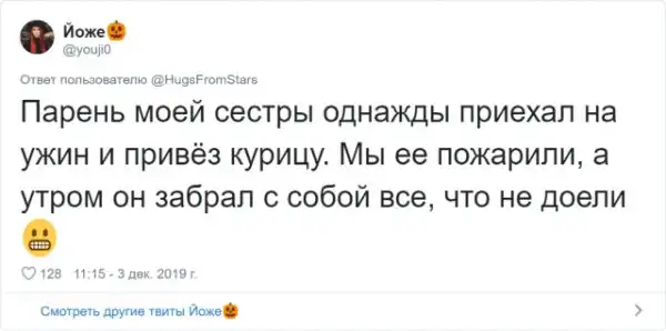 Разрыв отношений - это всегда неприятно. Очень хорошо, когда пара может разойтись полюбовно, без скандалов и ненависти. Но такое бывает, к сожалению, не часто. Парни, особенно, которых бросают, становятся очень мелочными. Они начинают требовать обратно подарки, которые дарили своим дама сердца. Их можно было бы понять, если бы речь шла о какой-нибудь серьезной вещи, например: фамильное кольцо покойной пра-прабабушки или игровая приставка (это святое). Но порой ситуация доходит до абсурда и мужчины требуют вернуть корм для кота, вилки и даже кастрюлю с супом. Пользовательница Твиттера с ником "youngmasha" устроила грустный, но при этом смешной тред, в котором девушки рассказали что их бывшие попросили вернуть после расставания. Давайте посмотрим.