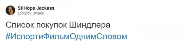 Популярный американский ведущий и комик Джимми Феллон запустил в Твиттере новый флешмоб: "Испорти фильм одним словом". Все очень просто, нужно взять название фильма и добавить к нему одно слово, которое перевернет его общее значение с ног на голову. Получилось весьма забавно. Кстати, вы тоже можете поучаствовать и предложить свои варианты в комментариях!