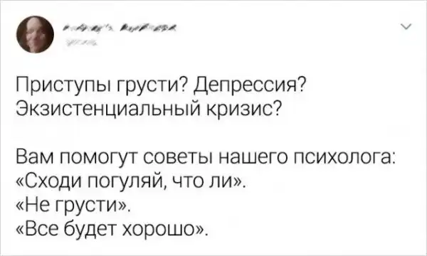 Ученые говорят, что в идеале люди должны хотя бы раз в месяц ходить к психологу – эта практика успешно проходит на западе, а вот в России пока с этим проблемы. Зато мы с уверенностью можем сказать, что психологи – те еще шутники, ведь воспринимать наши проблемы без юмора – дано под силу не каждому. Посмотрим, что же интересного они пишут в Твиттере.
