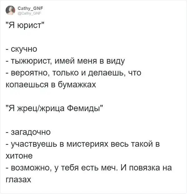 Где, как не в Твиттере собираются любители подурачится и фантазировать. На этот раз пользователи решили устроить и флешмоб и показать скучные профессии с необычной стороны. И желательно, чтобы получилось загадочно. Организатором выступил редактор-корректор Дэвид Ист. В описании своей работы он обозначил себя как человека, который исправляет чужие ошибки - и, возможно, у него даже есть меч! Пользователи быстро подхватили эту схему. Давайте посмотрим, что у них получилось.