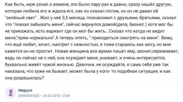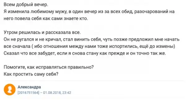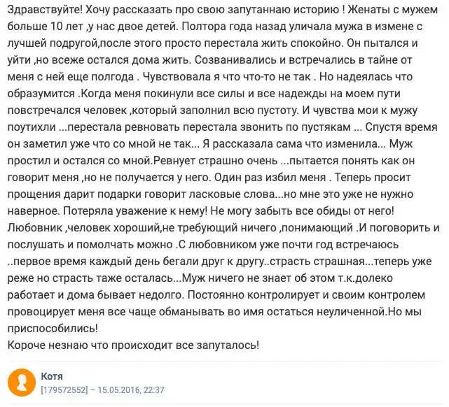 Возможно, наши читатели тоже попадали в подобные ситуации (кому изменяли или изменяли своим партнерам сами), делитесь опытом в комментариях!