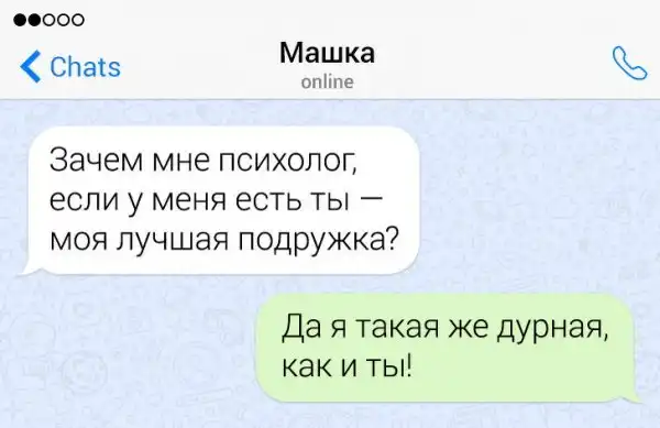 Существует ошибочное мнение, что женской дружбы не бывает. Конечно же, это не так. Девушки так же как и парни постоянно подкалывают друг друга. Ну и, конечно же, всегда поддерживают и выручают в трудную минуту. Это доказывает наша подборка забавных переписок. Давайте посмотрим.