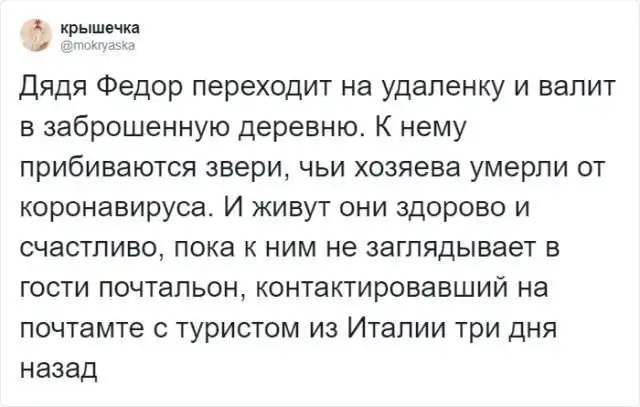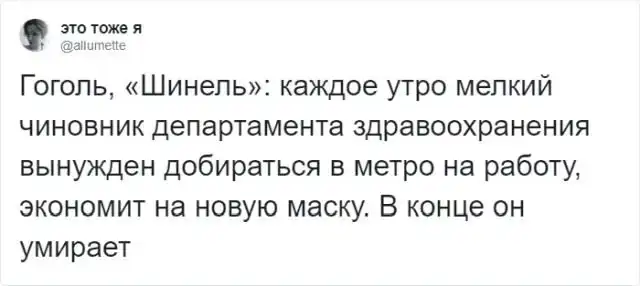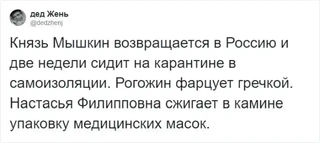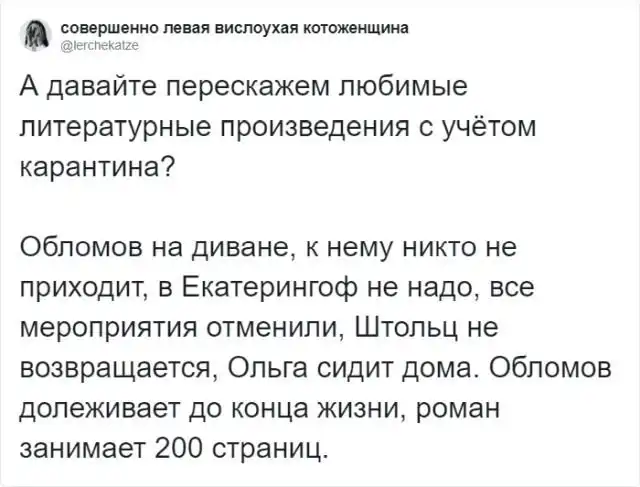 Тред в твиттере: перепишите сюжет известных книг так, если бы действие проходило во время карантина