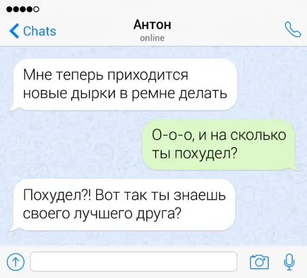 Хороший друг всегда придет на помощь. Если вы приуныли, то верный товарищ обязательно примчится и восстановит ваш боевой дух смешной шуткой. Хотя можно обойтись и сообщением, как это сделали герои нашей подборки. Давайте посмотрим новую подборку забавных переписок.