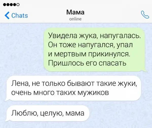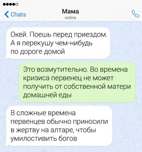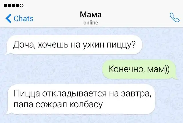 Если разделить юмор на категории, то в этом списке обязательно нужно указать "родительский сарказм". Этот поджанр комедии заслуживает отдельного внимания. Только мамы и папы умеют так мило и нежно подкалывать своих чад. Давайте посмотрим подборку забавных переписок с родителями и отвлечемся от негатива.