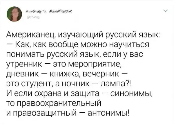Русский язык находится на 5-м место по распространенности в мире. На нем говорит около 300 миллионов человек. Для 170 миллионов - это родной язык, а 130 миллионов - учили русский с нуля. Пользователи устроили небольшой филологический тред, который посвящен "великому и могучему". Давайте посмотрим.