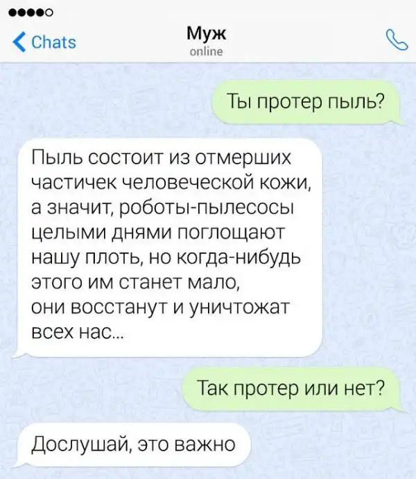 Семья - это настоящий кладезь юмора и вдохновения. Как в доме умеют посмеяться над трудностями, то никакие невзгоды им нестрашны. Предлагаем почитать забавные переписки родственниками и поднять себе настроение.