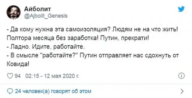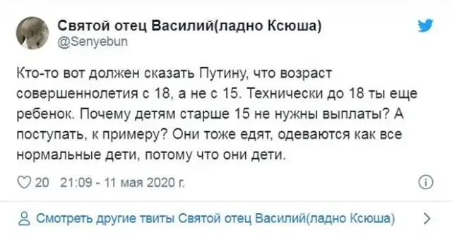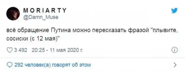 Недавно российский президент Владимир Путин выступил перед гражданами. Надо отметить, что его решение выглядит крайне странно - когда в стране заболевших почти не было, всех обязали сидеть дома. Когда Россия вышла в лидеры по числу заразившихся - отменил период нерабочих дней. В общем, пользователи в социальных сетях мимо такого решения пройти не могли, заодно обсудив и назначенные на детей выплаты.