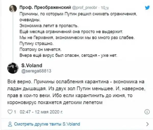 Реакция россиян на отмену периода нерабочих дней и речь Владимира Путина