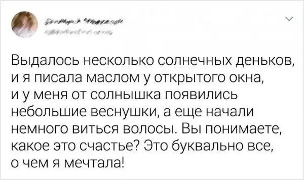 О такой непростой теме, как "счастье" размышляют уже множество сотен лет. Великие умы человечества посвящали этому целые трактаты. Но читать эти фолианты довольно скучно. Веселей и легче почитать подборку твитов, в котором пользователи выразили свое мнение о том, что же такое "женское счастье".