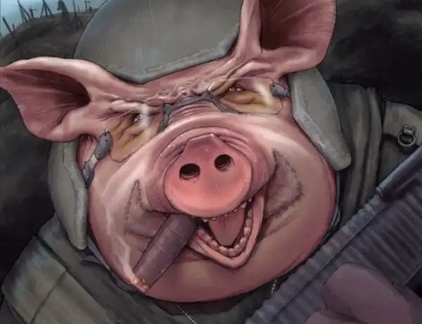 — Чего пиривалило? — брезгливо покосился на поросёнка ефрейтор.