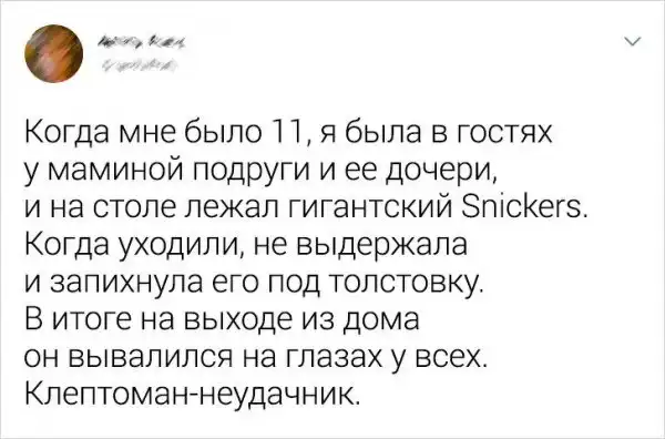 У всех нас есть история, которую очень хочется рассказать, но... стыдно. Специально для таких случаев в Твиттере регулярно проводится флешмоб под названием "Моя стыдная история". В нем пользователи могут без доли стеснения поведать о своих досадных неудачах. Давайте посмотрим.