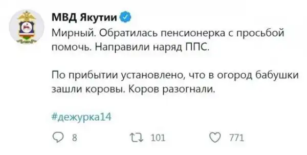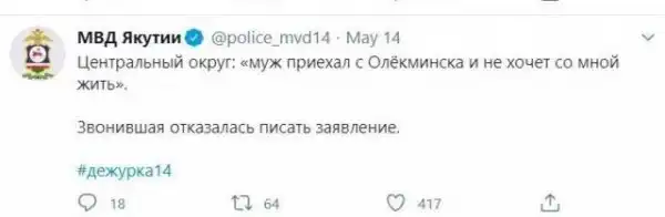 Сотрудники якутского МВД решили поделиться с пользователями Интернета забавными историями о странных и необычных вызовах.