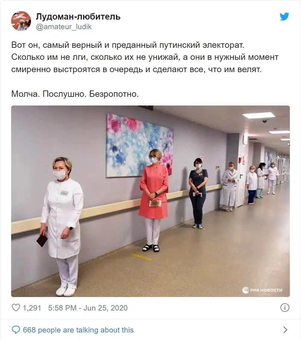 Молча. Послушно. Безропотно. pic.twitter.com/WeL8dlyh6x— Лудоман-любитель (@amateur_ludik) June 25, 2020