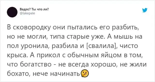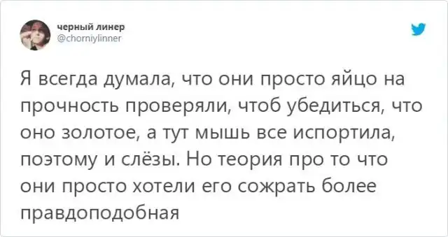 В Твиттере захотели узнать, в чем логика сказки про Курочку Рябу. И вот ответы пользователей