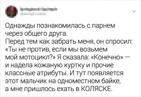 Когда мы смотрим голливудские фильмы, то в них первые свидания показываются, как настоящая сказка. Но в жизни романтические рандеву далеко не всегда проходят удачно. Авторы этих твитов решили иронично рассказать о своих провальных свиданиях. Давайте посмотрим.