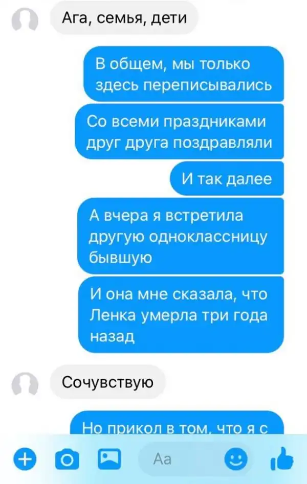 Интересный креатив в виде переписки в соцсетях...