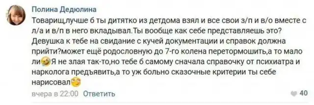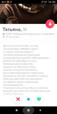 Я как-то на одном сайте дал 2 обьявы, первая "Ищу для создания семьи", второе- "Свожу в тёплые края за потрахаццо". Счёт- 0:8.