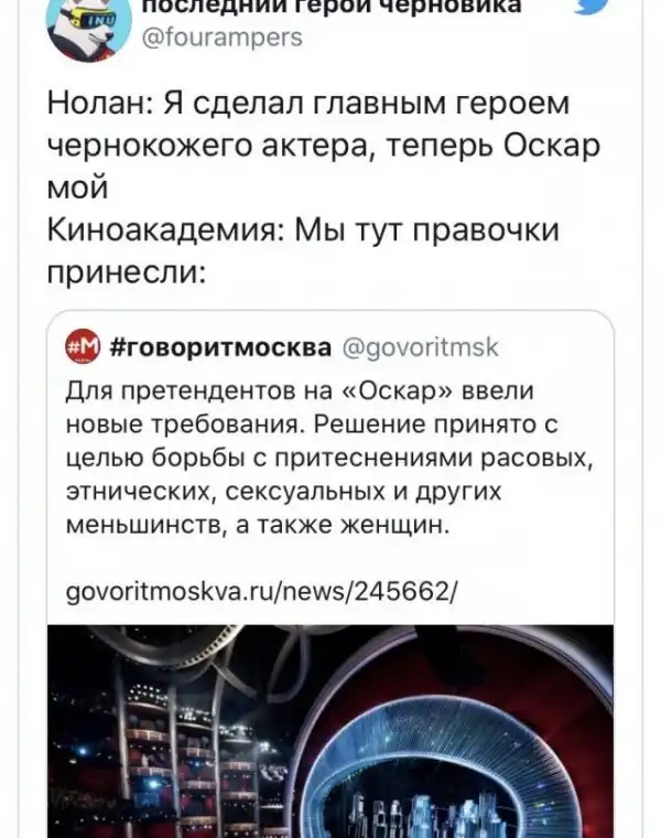 Новость о том, что теперь награда за лучший фильм будет присуждать по новым правилам буквально взорвала соцсети. Посмотрим, как реагируют пользователи.