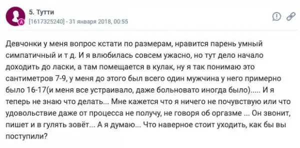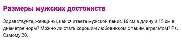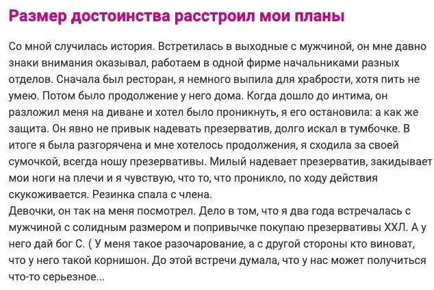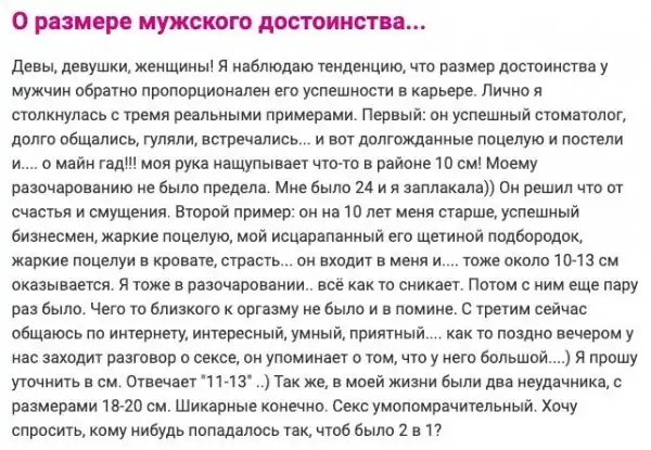Имеет ли размер значение? А маленький - это сколько? Мы решили заглянуть на популярный женский форум и наткнулись на многочисленные жалобы и обсуждения щепетильной темы. Какую же глупость порой они пишут!