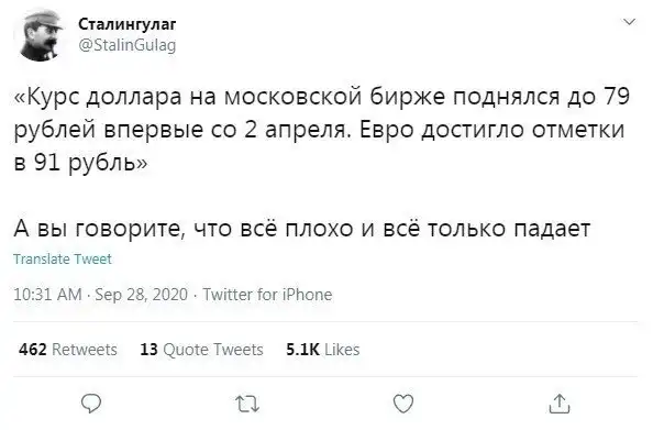 Российская валюта становится все дешевле и дешевле. Курс доллара уже достиг отметки в 77 рублей. И пользователи социальных сетей, осознавая весь ужас ситуации, все равно не теряют оптимизма и шутят на эту тему.