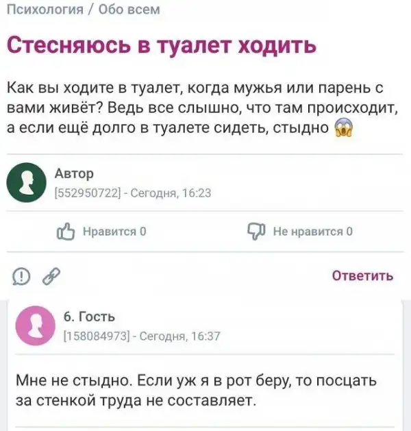 Все мы любим и ценим наших дорогих женщин. Но порой кажется, что они прилетели на Землю с другой планеты. По крайней мере так кажется, когда заходишь на их женские форумы. На этих сайтах барышни делятся опытом и задают вопросы на деликатные темы. Некоторые темы просто поражают воображение. Давайте посмотрим.