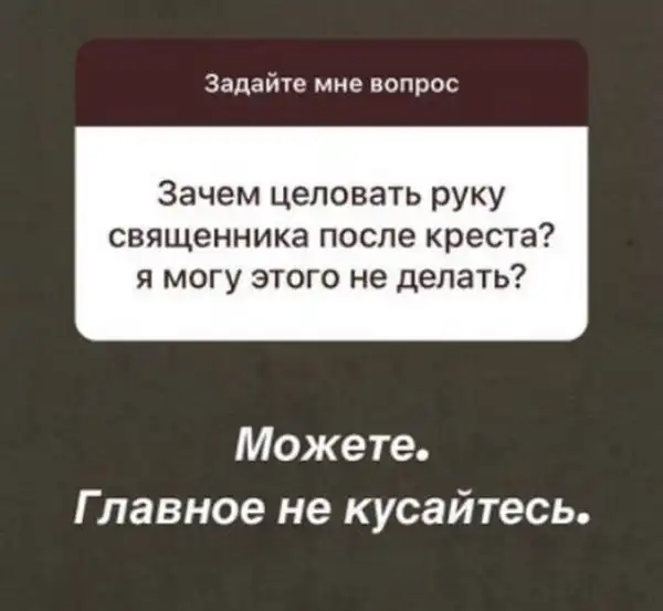 Не все священнослужители — это люди с каменными лицами. Например, этот иерей по имени Павел Островский общается со своими подписчиками в Instagram — к слову, за аккаунтом следят свыше 220 000 человек. Мужчина собирает вопросы от людей, после чего в забавной форме им отвечает. И эти ответы действительно могут поднять настроение. Однако отметим, что на серьезные вопросы он при этом не отвечает шутками, а детально рассуждает.